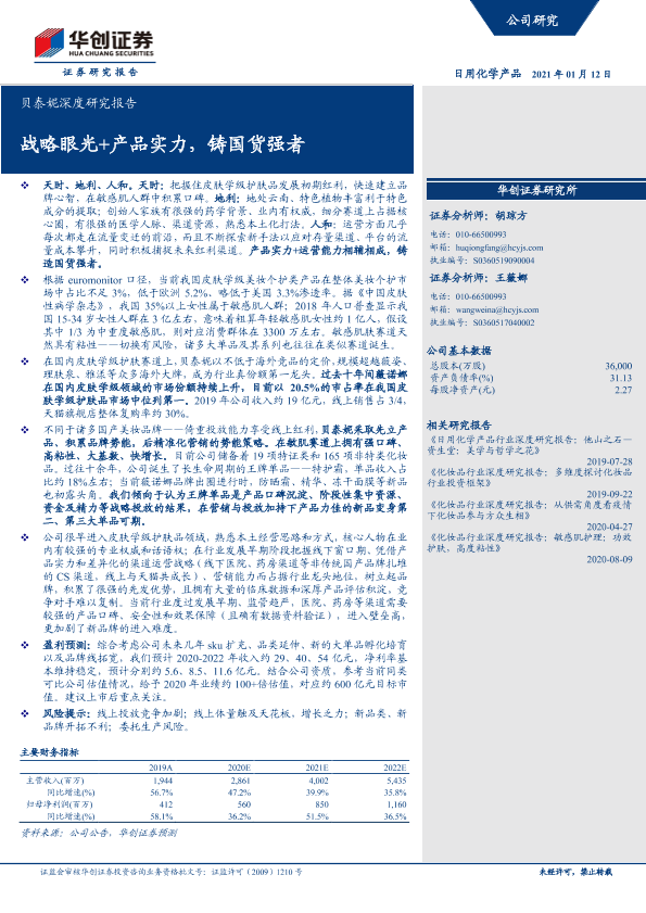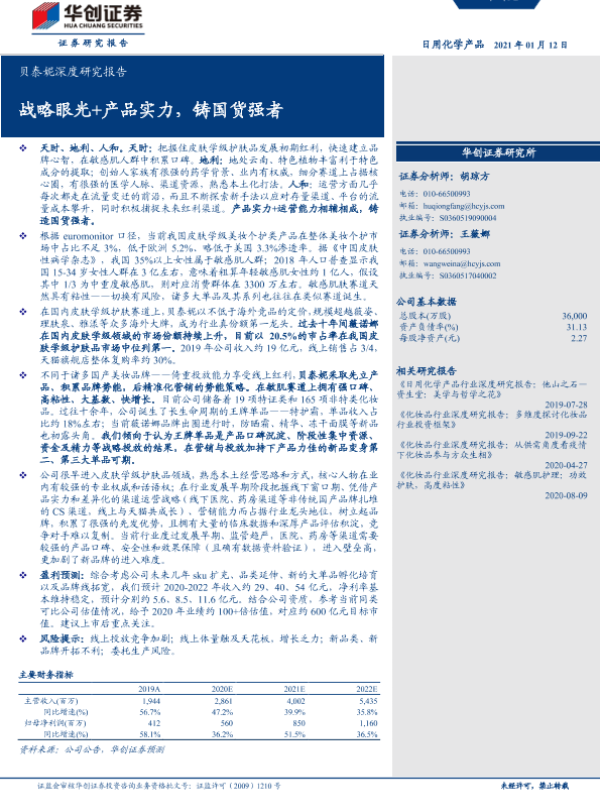 【华创证券】【20210112】贝泰妮深度研究报告:战略眼光+产品实力,铸国货强者-14页