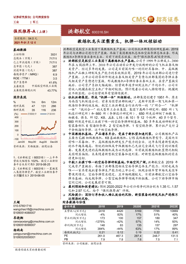 【海通证券】【20210112】洪都航空-600316.SH-教练机龙头涅槃重生,机弹一体双核驱动-25页