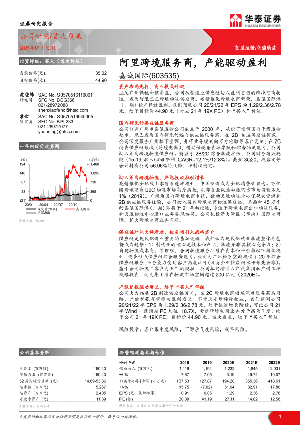 【华泰证券】【20210113】20210113-华泰证券-嘉诚国际-603535.SH-阿里跨境服务商,产能驱动盈利-21页