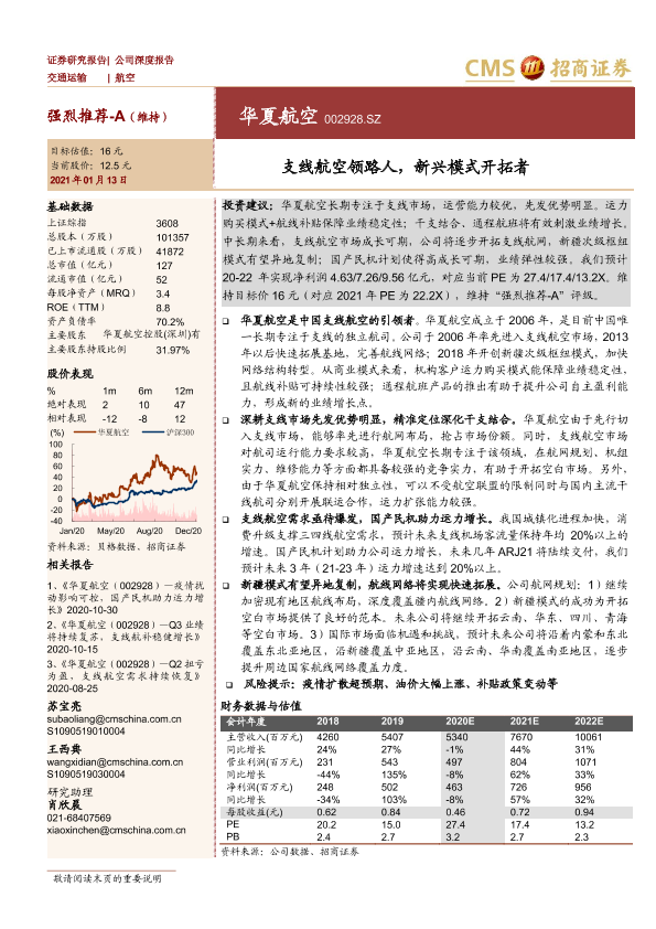 【海通证券】【20210113】华夏航空-支线航空领路人,新兴模式开拓者-23页