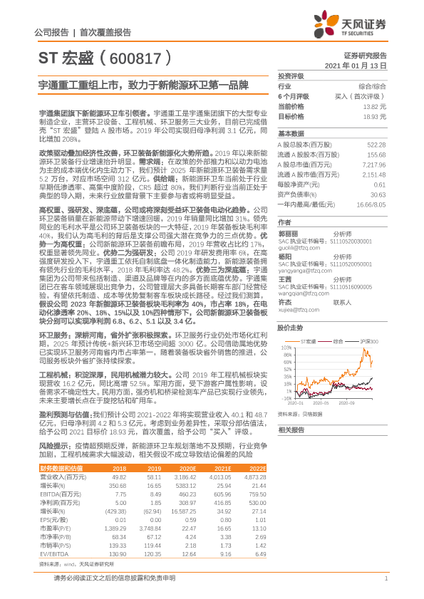 【天风证券】【20210113】ST宏盛-600817.SH-宇通重工重组上市,致力于新能源环卫第一品牌-32页
