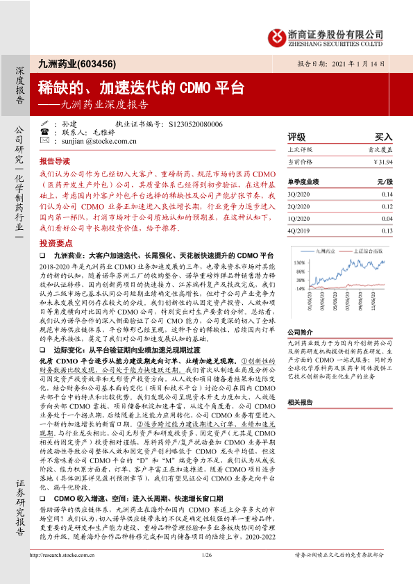 【浙商证券】【20210114】九洲药业深度报告:稀缺的、加速迭代的CDMO平台-26页