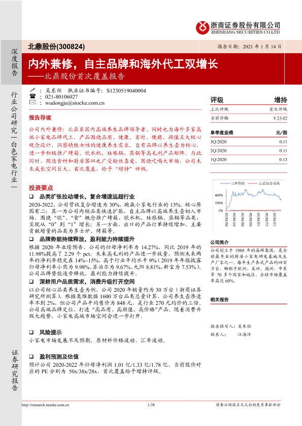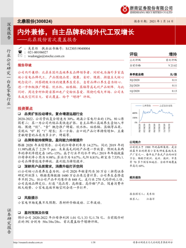 【浙商证券】【20210114】北鼎股份首次覆盖报告:内外兼修,自主品牌和海外代工双增长-38页