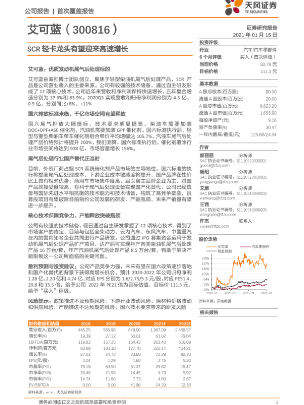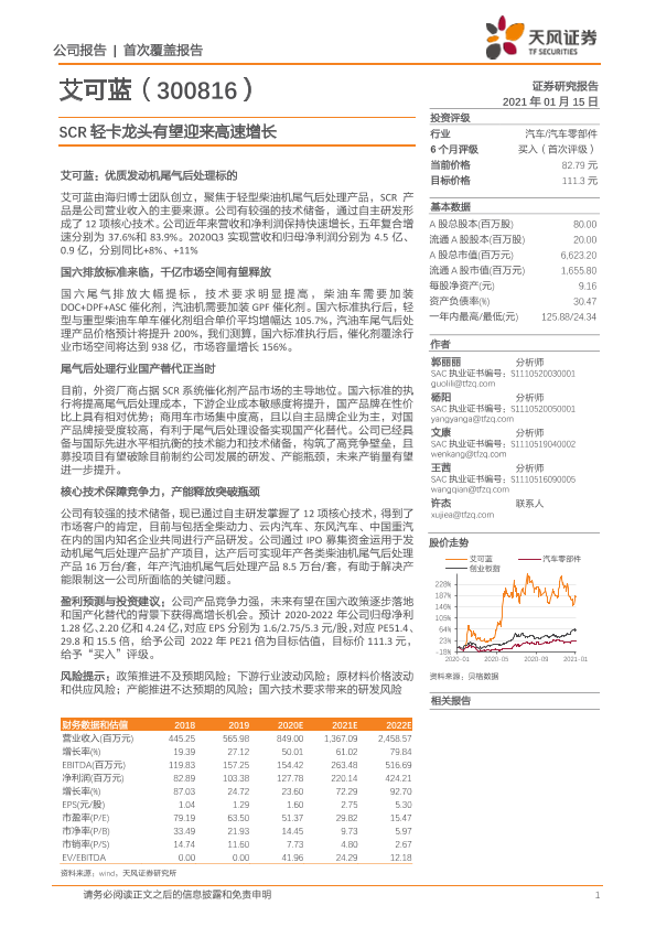 【天风证券】【20210115】艾可蓝-300816.SZ-SCR轻卡龙头有望迎来高速增长-22页