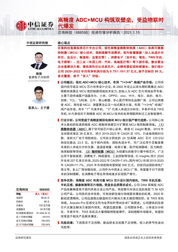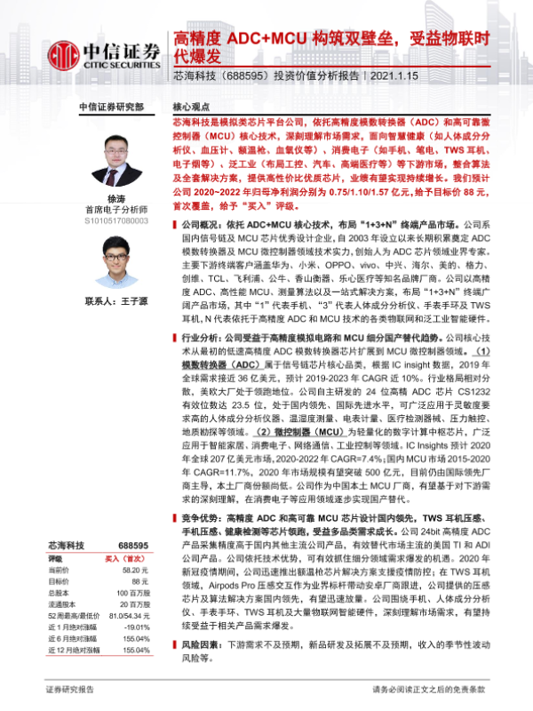 ADC MCU 投资分析 物联网 芯海科技