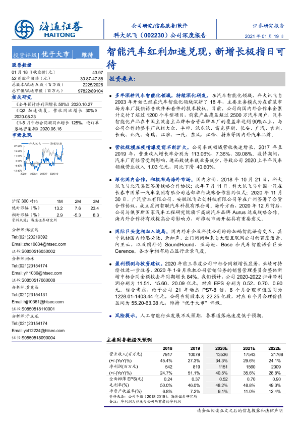 【海通证券】【20210119】20210119-海通证券-科大讯飞-002230.SZ-公司深度报告:智能汽车红利加速兑现,新增长极指日可待-18页