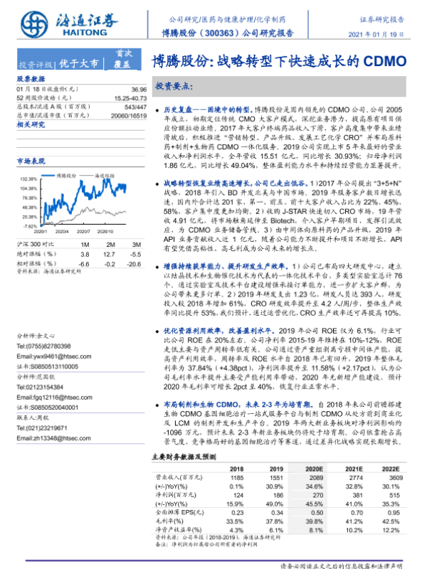 【海通证券】【20210119】博腾股份:战略转型下快速成长的CDMO-23页
