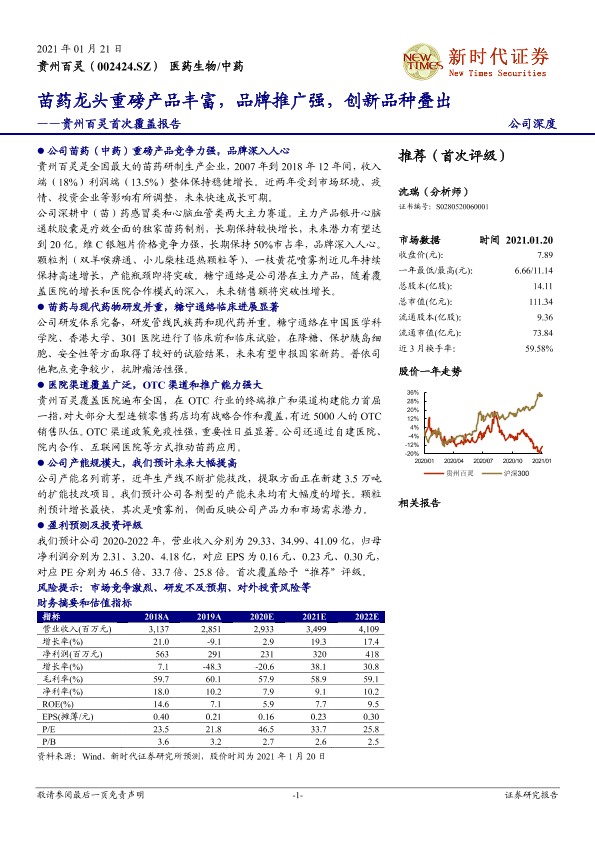 【新时代证券】【20210121】贵州百灵首次覆盖报告:苗药龙头重磅产品丰富,品牌推广强,创新品种叠出-31页