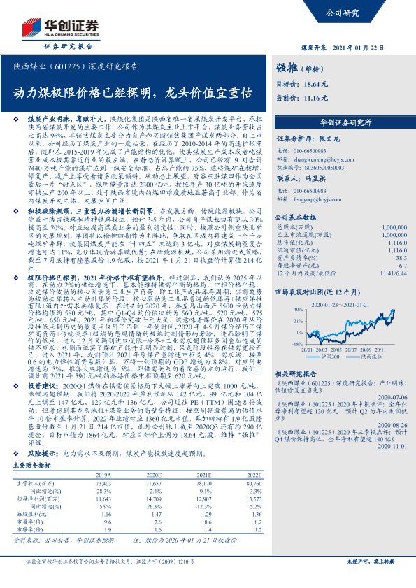 【华创证券】【20210122】20210122-华创证券-陕西煤业-601225.SH-深度研究报告:动力煤极限价格已经探明,龙头价值宜重估-20页