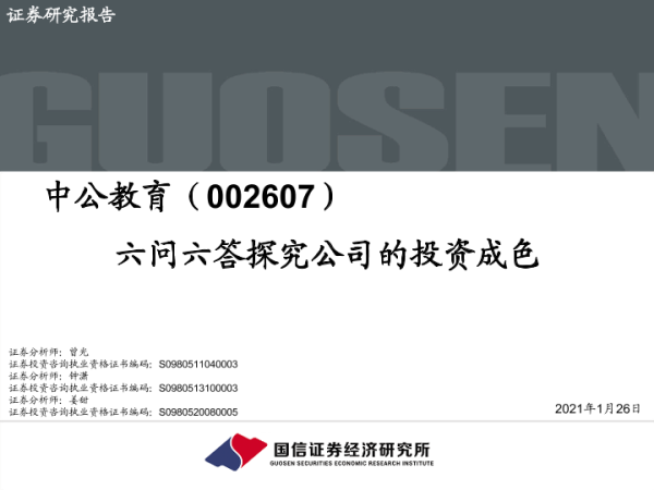 【国信证券】【20210126】20210126-国信证券-中公教育-002607.SZ-六问六答探究公司的投资成色-29页