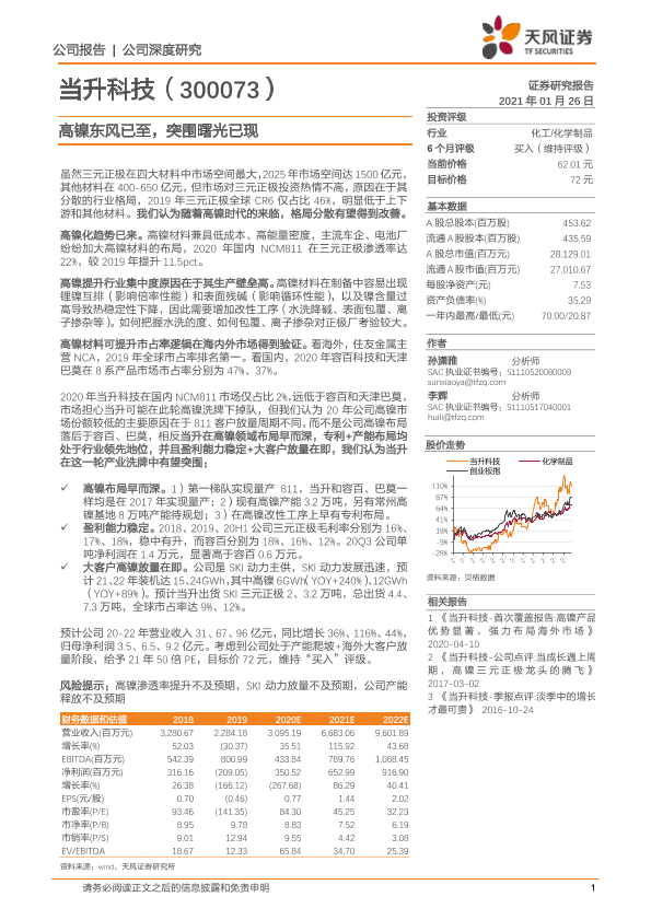 【天风证券】【20210126】当升科技-300073.SZ-高镍东风已至,突围曙光已现-26页