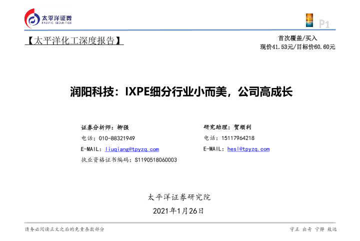 【太平洋证券】【20210126】润阳科技:IXPE细分行业小而美,公司高成长-28页