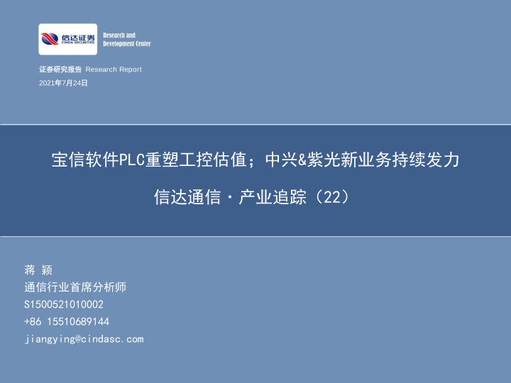 【信达证券】【20210724】信达通信.产业追踪(22):宝信软件PLC重塑工控估值;中兴&紫光新业务持续发力-54页