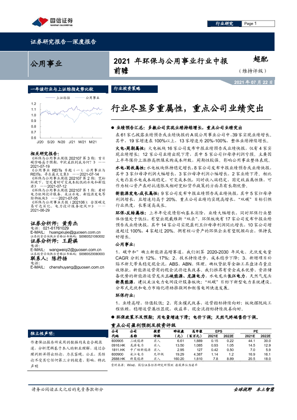 【国信证券】【20210722】2021年环保与公用事业行业中报前瞻:行业尽显多重属性,重点公司业绩突出-17页