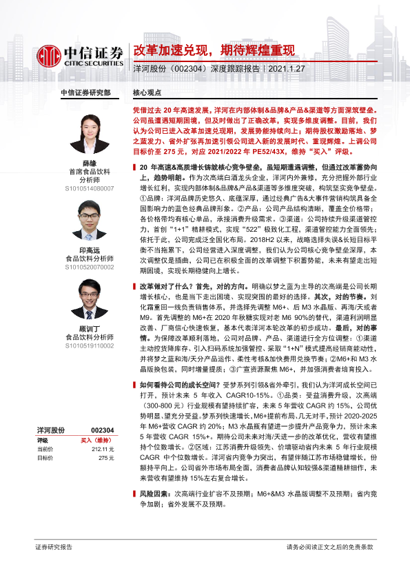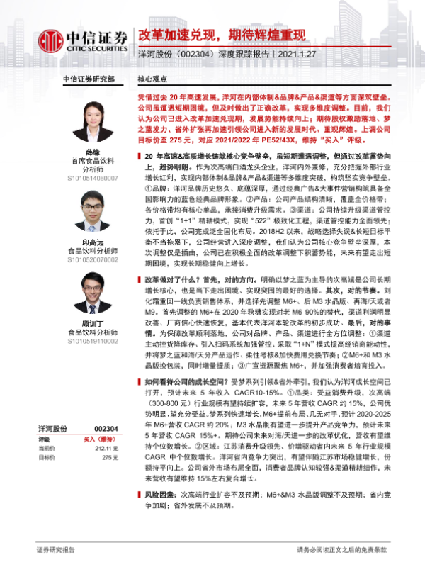 【中信证券】【20210127】20210127-中信证券-洋河股份-002304.SZ-深度跟踪报告:改革加速兑现,期待辉煌重现-30页