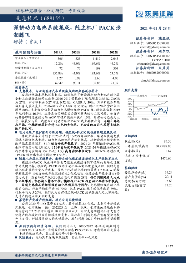 【东吴证券】【20210128】深耕动力电池系统集成,随主机厂PACK浪潮腾飞-27页