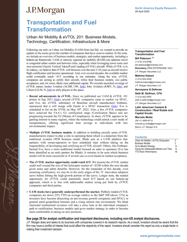 【J.P. Morgan】【20220428】Transportation and Fuel Transformation Urban Air Mobility & eVTOL-24页