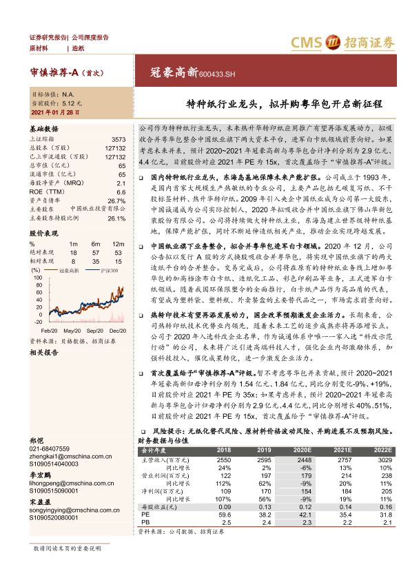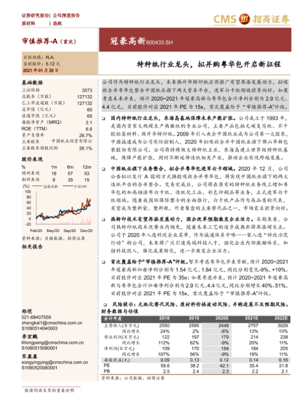 【海通证券】【20210128】冠豪高新-600433.SH-特种纸行业龙头,拟并购粤华包开启新征程-19页