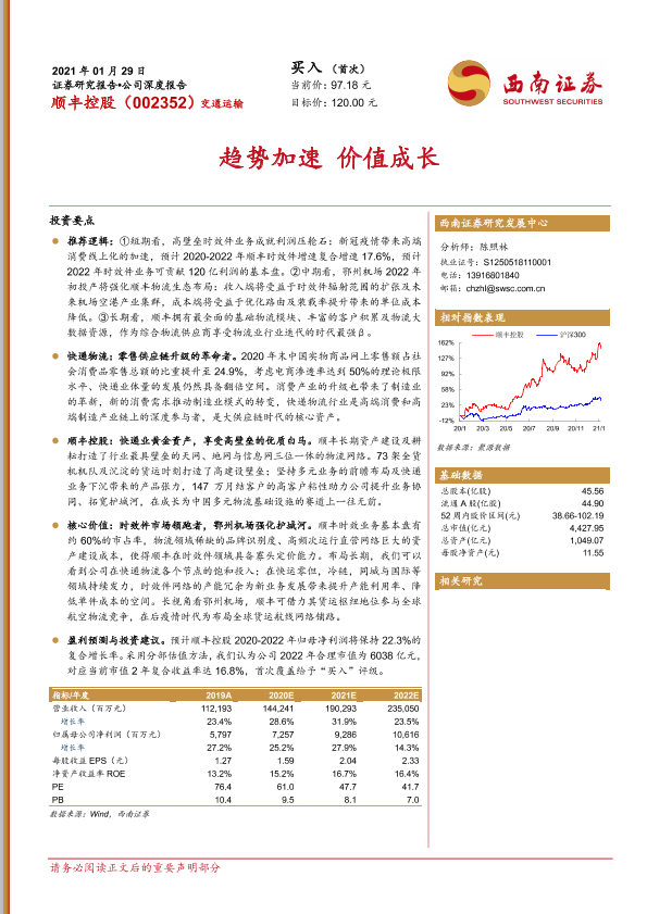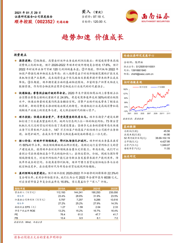 【西南证券】【20210129】20210129-西南证券-顺丰控股-002352.SZ-趋势加速 价值成长-56页