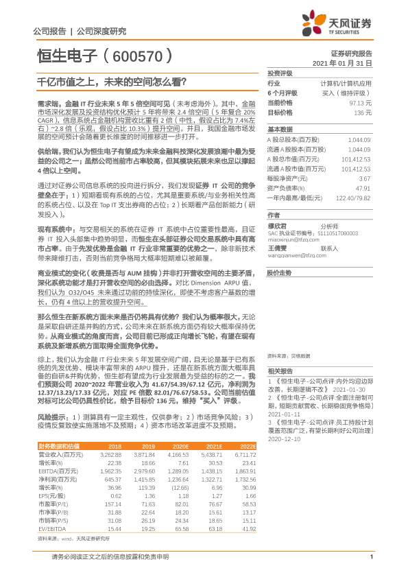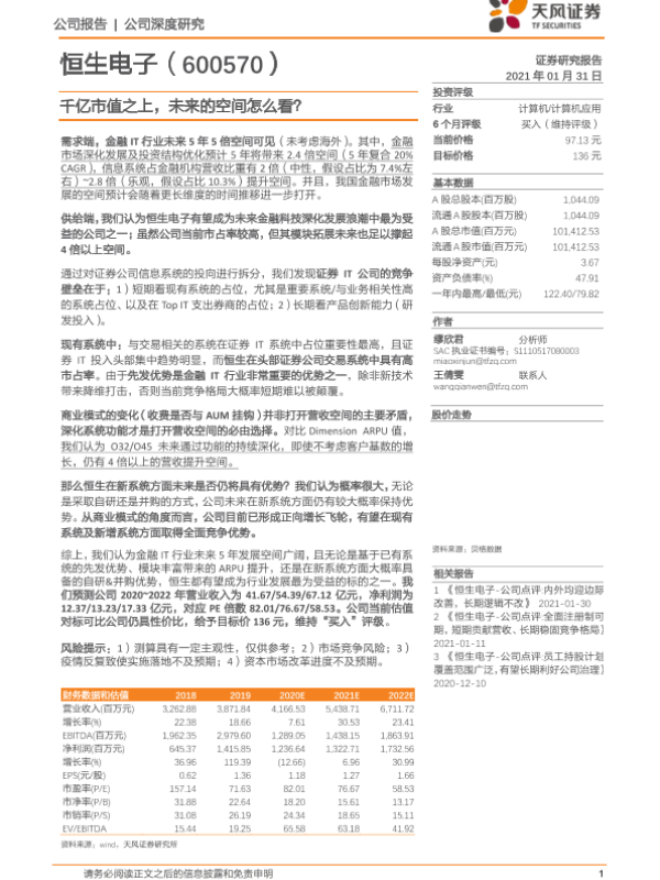 【天风证券】【20210131】20210131-天风证券-恒生电子-600570.SH-千亿市值之上,未来的空间怎么看?-18页