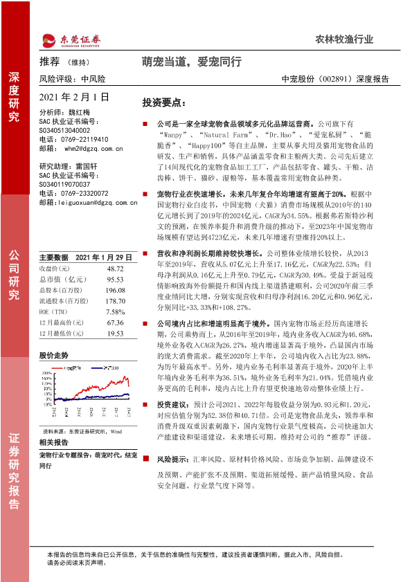 【东莞证券】【20210201】20210201-东莞证券-中宠股份-002891.SZ-深度报告:萌宠当道,爱宠同行-27页