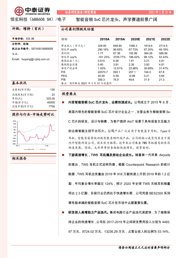 【中泰证券】【20210131】中泰证券-恒玄科技-688608.SH-智能音频SoC芯片龙头,声学赛道前景广阔-20页