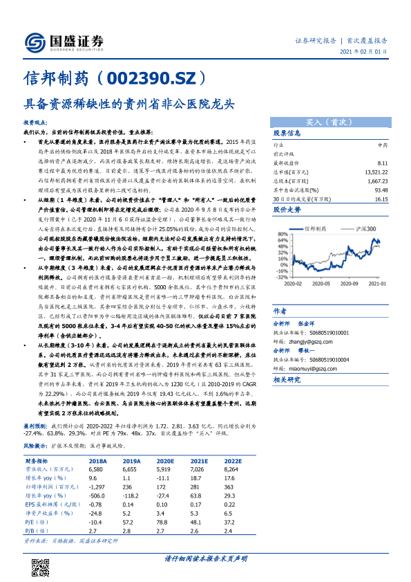 【国盛证券】【20210201】信邦制药(002390.SZ)-具备资源稀缺性的贵州省非公医院龙头-21页