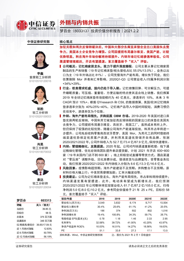 【中信证券】【20210202】20210202-中信证券-梦百合-603313.SH-投资价值分析报告:外销与内销共振-30页