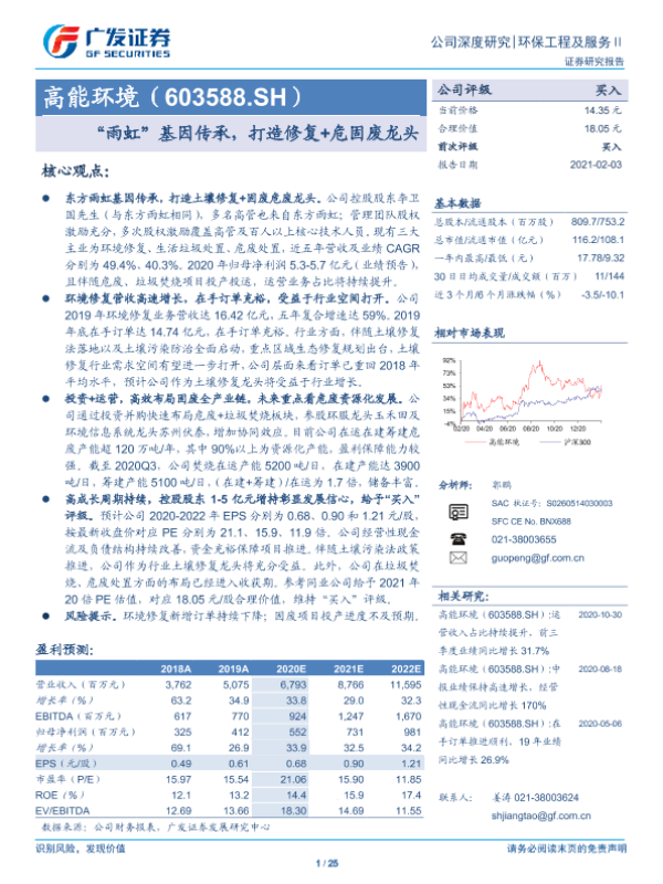 东方雨虹 危废处理 土壤修复 环保工程 高能环境