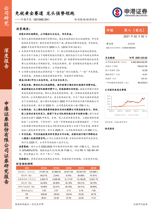 【申港证券】【20210202】免税黄金赛道 龙头强势领跑——中国中免(601888.SH)-64页