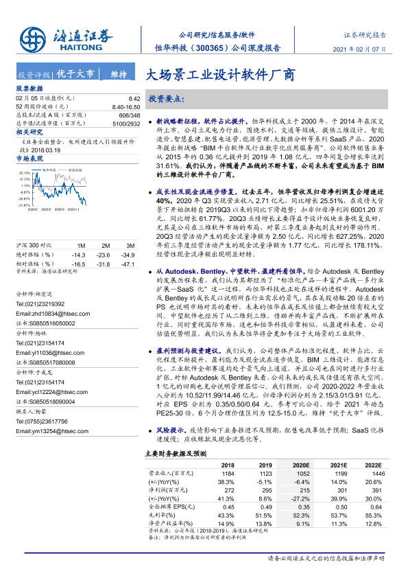 【海通证券】【20210207】20210207-海通证券-恒华科技-300365.SZ-公司深度报告:大场景工业设计软件厂商-37页