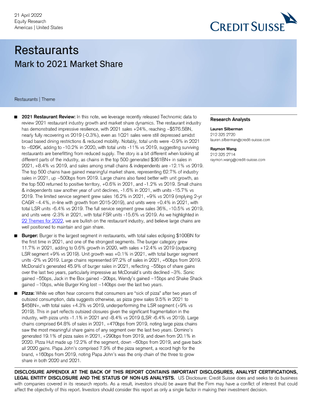 【瑞信(Credit Suisse)】【20220421】瑞信-美股餐饮行业-餐厅:2021年市场份额-24页