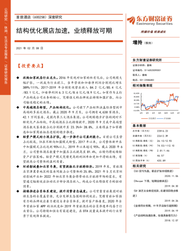 【东方财富证券】【20210208】20210208-东方财富证券-首旅酒店-600258.SH-深度研究:结构优化展店加速,业绩释放可期-35页