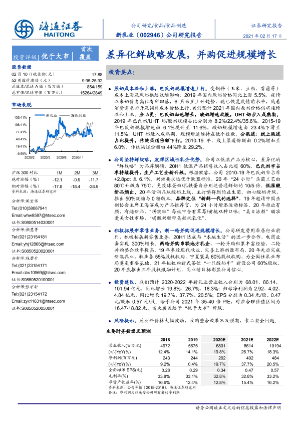 【海通证券】【20210217】20210217-海通证券-新乳业-002946.SZ-差异化鲜战略发展,并购促进规模增长-36页
