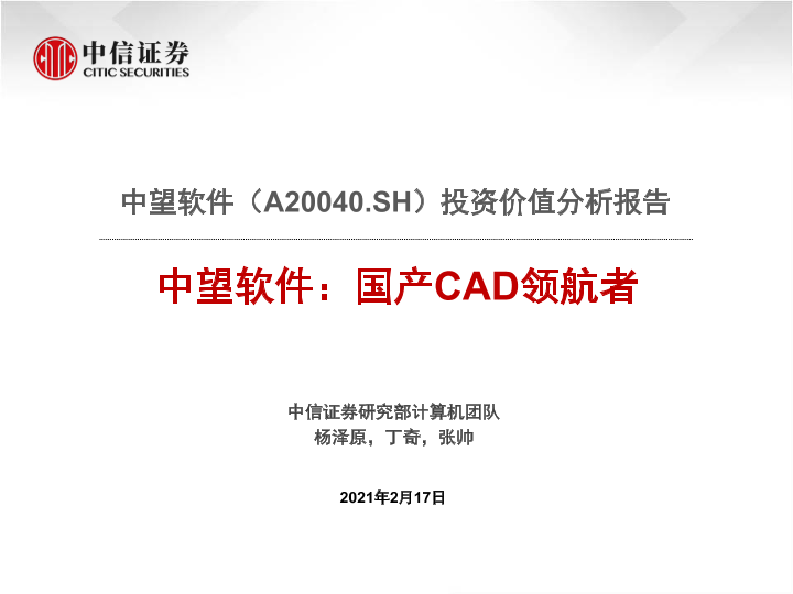 【中信证券】【20210217】20210217-中信证券-中望软件-688083.SH-投资价值分析报告:国产CAD领航者-47页