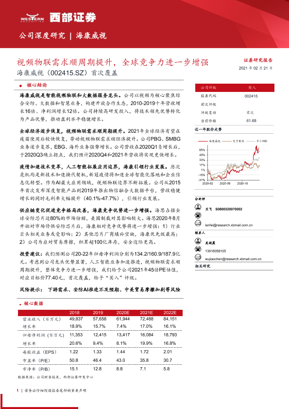 【西部证券】【20210221】海康威视-002415.SZ-首次覆盖:视频物联需求顺周期提升,全球竞争力进一步增强-46页