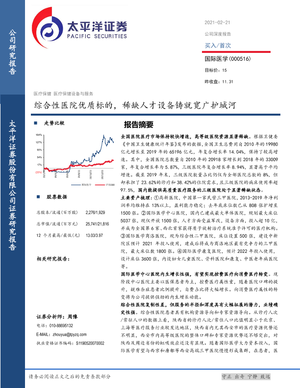 【太平洋证券】【20210221】20210221-太平洋-国际医学-000516.SZ-综合性医院优质标的,稀缺人才设备铸就宽广护城河-32页