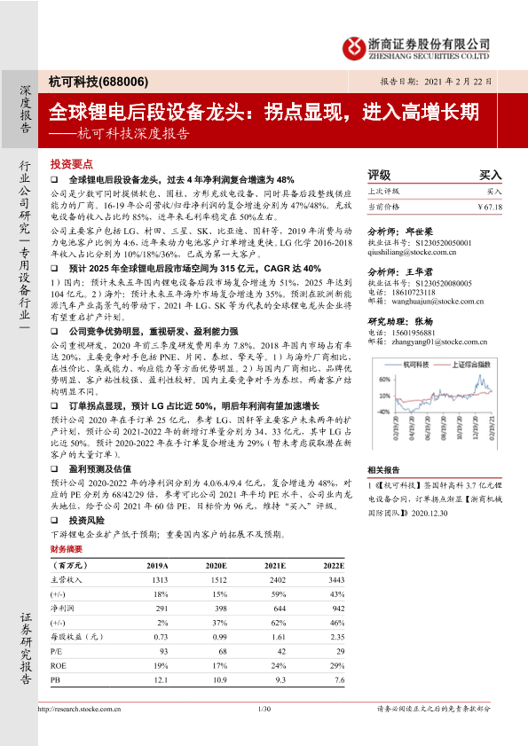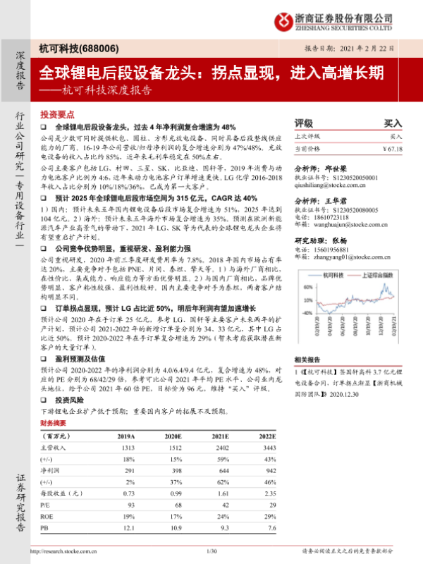 【浙商证券】【20210222】杭可科技深度报告:全球锂电后段设备龙头:拐点显现,进入高增长期-30页