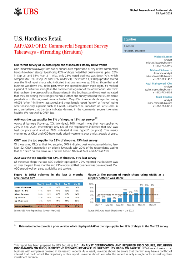 【瑞银】【20220425】瑞银-美股零售行业-AAP、AZO、ORLY:商业板块调查要点-46页