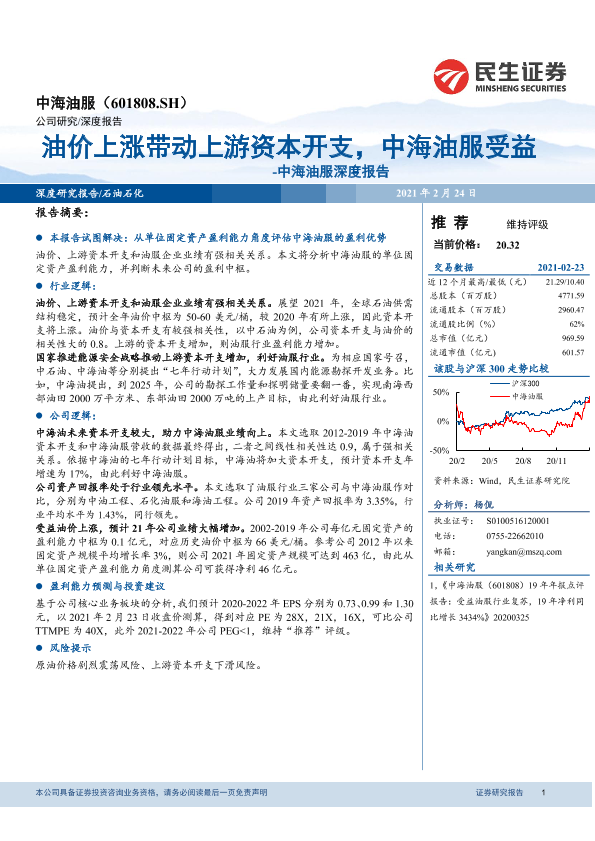 【民生证券】【20210224】中海油服深度报告:油价上涨带动上游资本开支,中海油服受益-23页