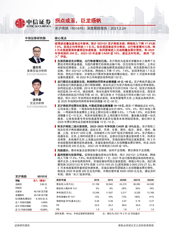 【中信证券】【20210224】20210224-中信证券-京沪高铁-601816.SH-深度跟踪报告:拐点或至,巨龙扬帆-21页