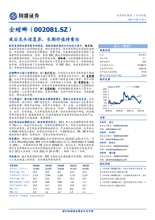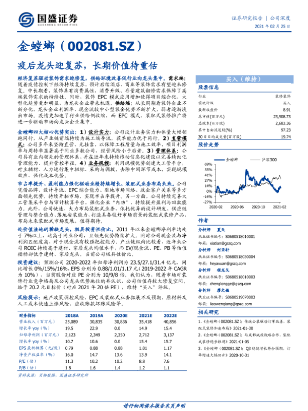 疫情后复苏 装配式装修 装饰行业 证券研究报告 金螳螂