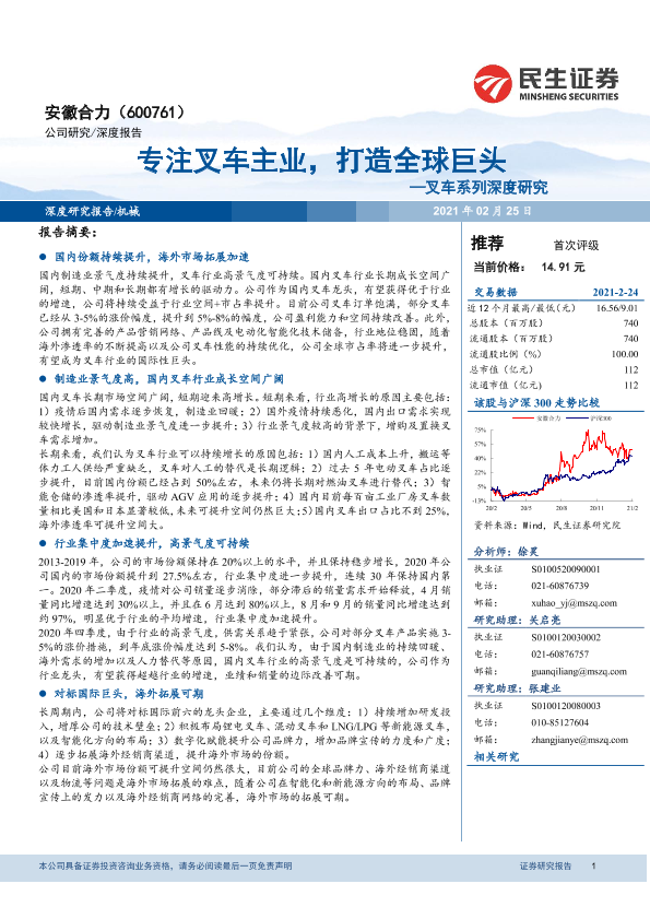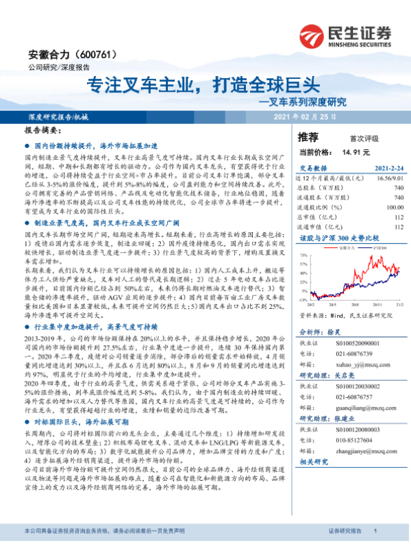 【民生证券】【20210225】20210225-民生证券-安徽合力-600761.SH-叉车系列深度研究:专注叉车主业,打造全球巨头-31页