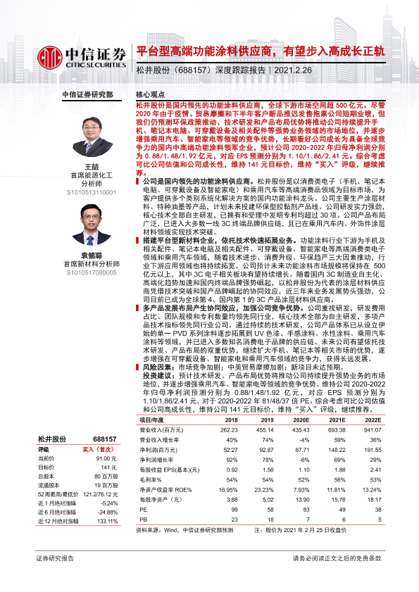 【中信证券】【20210226】20210226-中信证券-松井股份-688157.SH-深度跟踪报告:平台型高端功能涂料供应商,有望步入高成长正轨-27页