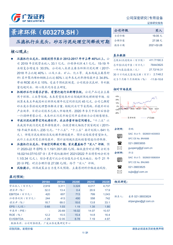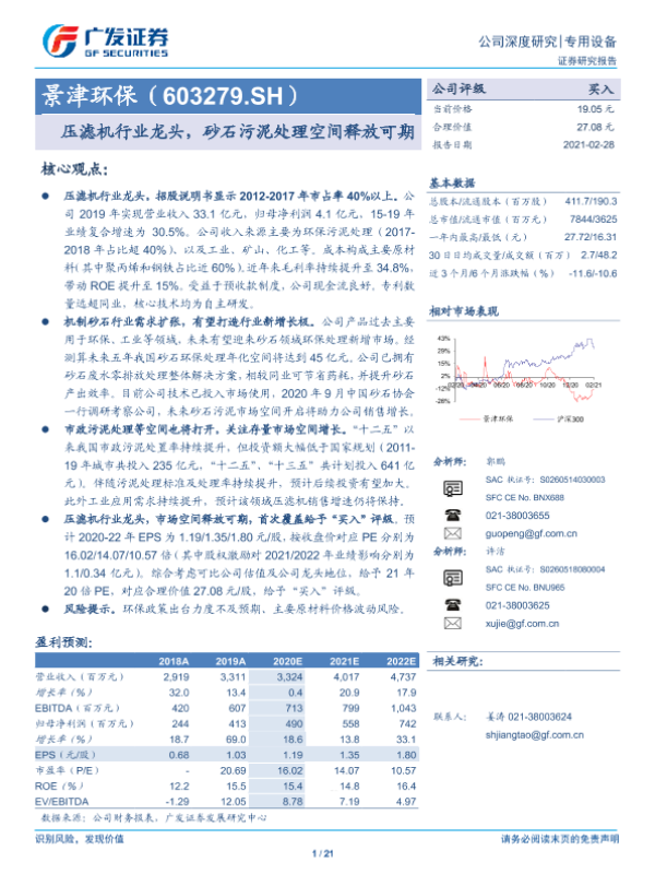 【广发证券】【20210228】景津环保(603279.SH)压滤机行业龙头,砂石污泥处理空间释放可期-21页