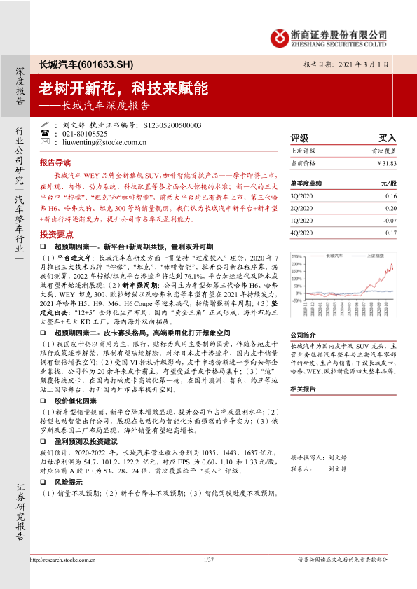 【浙商证券】【20210301】长城汽车深度报告:老树开新花,科技来赋能-37页