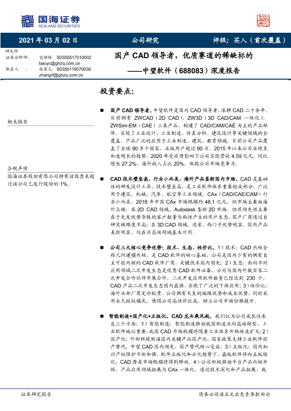 【国海证券】【20210302】国产CAD领导者,优质赛道的稀缺标的——中望软件(688083)深度报告-34页