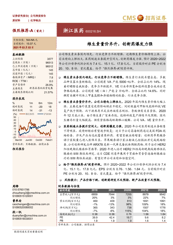 创新药 化学制品 浙江医药 股票分析 维生素