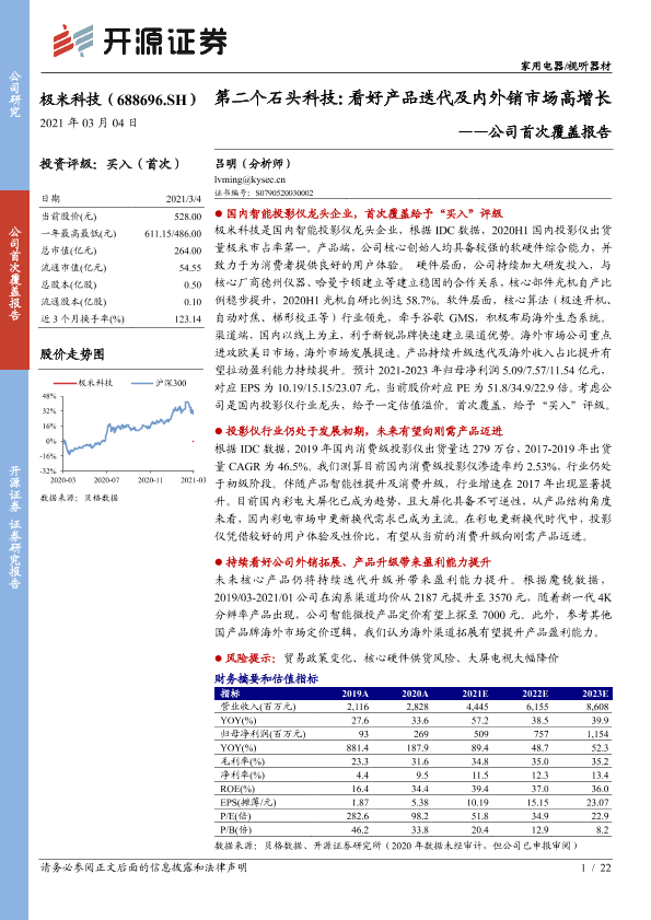 【开源证券】【20210304】极米科技-688696.SH-公司首次覆盖报告:第二个石头科技:看好产品迭代及内外销市场高增长-22页