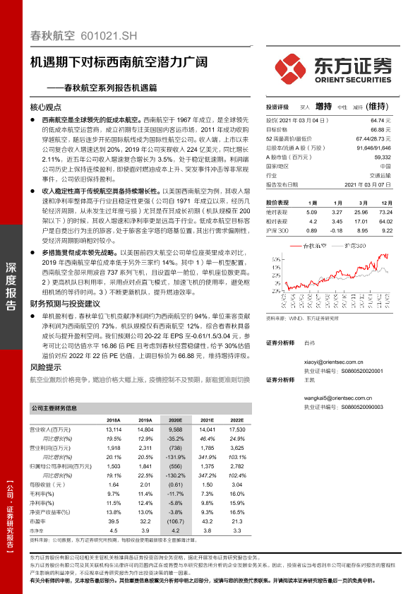【东方证券】【20210307】春秋航空系列报告机遇篇:机遇期下对标西南航空潜力广阔-16页